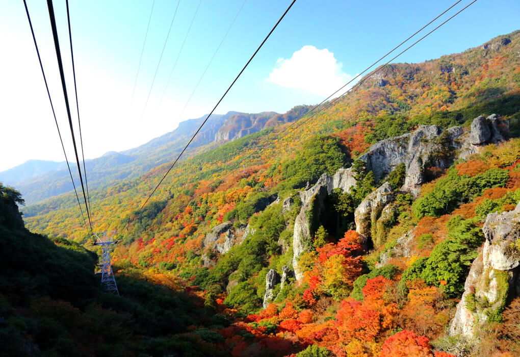 日本で唯一、空、海、渓谷を一度に眺望することができる「寒霞渓ロープウェー」があり、ロープウェイから眺める景色は美しく感動もの。特に秋の観光がベストシーズン!真っ赤に燃えるような鮮やかな紅葉が見ものです。